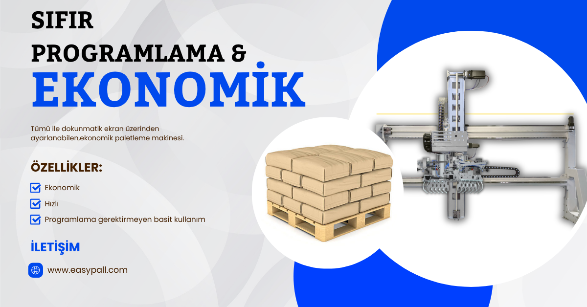 Easy S2500, küçük ve orta ölçekli üretimler için ideal kompakt paletleme çözümüdür.