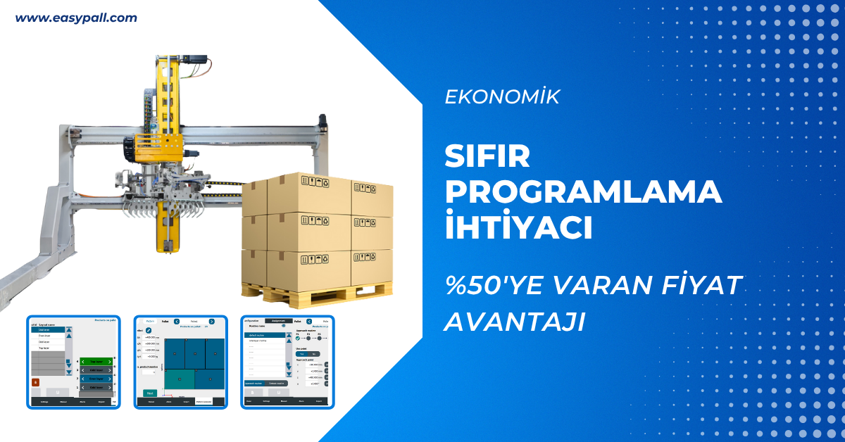 Easy S2500, küçük ve orta ölçekli üretimler için ideal kompakt paletleme çözümüdür.